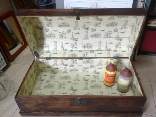 Decorar con maletas antiguas es hoy algo común, a modo de estanterías, mesita para el hall, o como esta, mesita auxiliar-revistero. El éxito fue rotundo, ya que en poco tiempo se vendió. Pero nos os preocupéis, siempre podéis encargar otra a nuestro taller, con los colores y acabados que más os gusten o combinen con la decoración de vuestra casa.